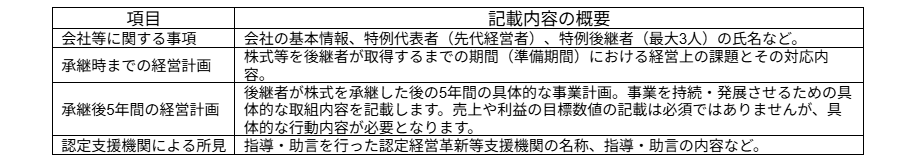 (特例承継計画の主な記載事項)