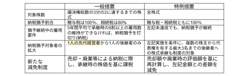 先代経営者1人から後継者1人だけでなく、複数の株主から最大3人の後継者への贈与・相続も対象となりました。これにより、共同経営の形で事業承継を進めやすくなっています。